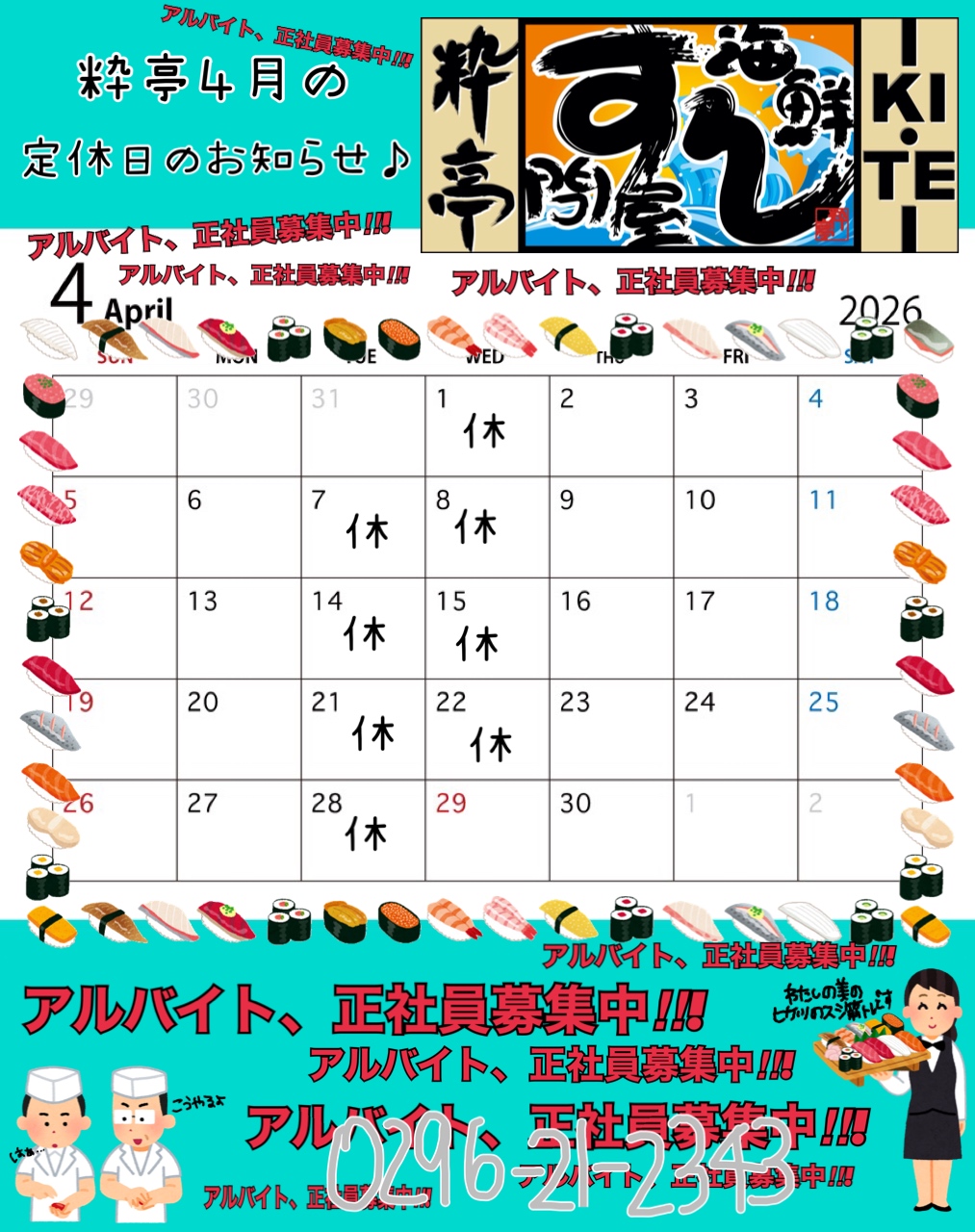 4月の定休日のお知らせ